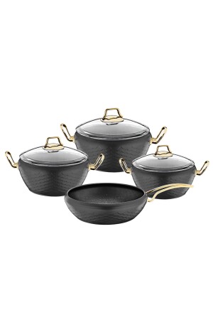 Bio Granit 7 Prç Istiridye Fildişi & Gold Kulp Tencere Ve Tava Seti EVTGR7PRÇEZMFİLDİŞİ