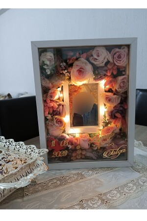 30x40 Cm Ledli ve İsimli Fotoğraf Bölümlü Tasarım Gül Kutusu Anı Çerçevesi! Ayna Çerçeve!