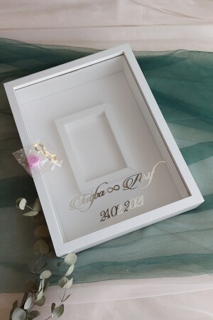 30x40 Cm Ledli Beyaz-gümüş Fotoğraf Bölümlü Tasarım Gül Kutusu Anı Çerçevesi! Ayna Çerçeve!