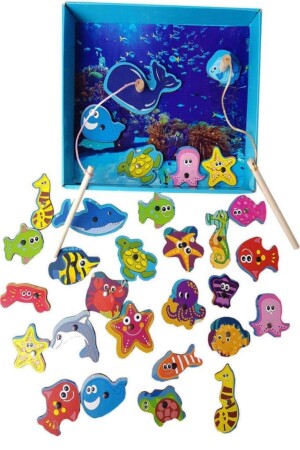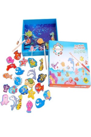MNZ-32-قطع لعبة الأطفال مع حوض السباحة ومغناطيس خشبي صندوق صيد الأسماك 861273245548458