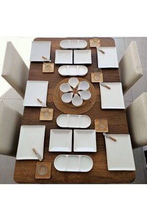 MNZ-33 قطعة بيضاء مستطيلة الفطور الفاخرة مجموعة 6 أشخاص MKT073