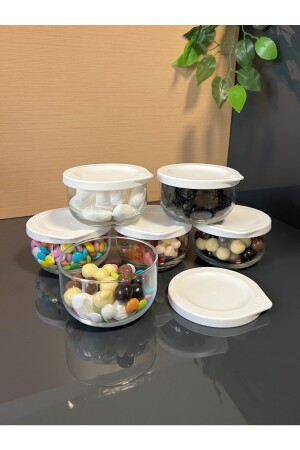 6 Adet Kapaklı Kahvaltılık Saklama Kabı 400 ml- Çok Amaçlı Yuvarlak Kase Çerezlik Set (6x400ml)