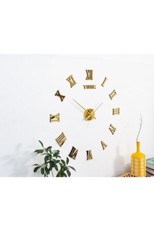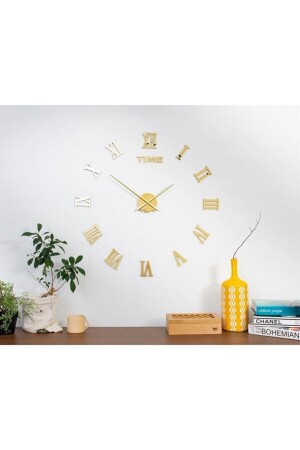 3 Boyutlu Piyano Lüxs Model Aynalı Duvar Saati Türk Rakamlı Gold