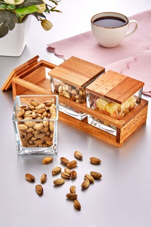 MNZ-3-Part خشبية القائمة الزجاجي الإفطار وعاء خفيفة تقديم عرض مجموعة TYC00553490649