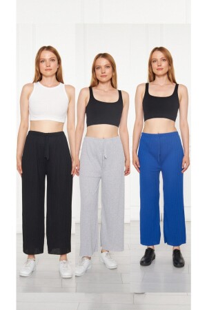 MNZ-3-Piece أسود - رمادى - سكس النساء سراويل وملابس رياضية ، بيجاما ملابس منزلية عادي K0109-001