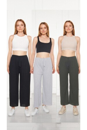 MNZ-3-Piece أسود - رمادي - خاكي سراويل زنانيات وملابس رياضية ، بيجاما منزلية عادي K0109-001