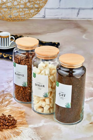 MNZ-3-piece شاي & سكر & قهوة مخزن تخزين مع غطاء خشب 1300 مل جرة زجاجية FBZ-1300-22C