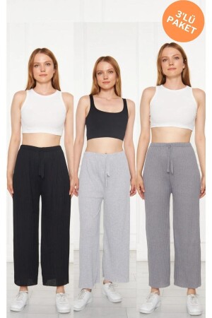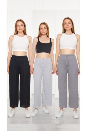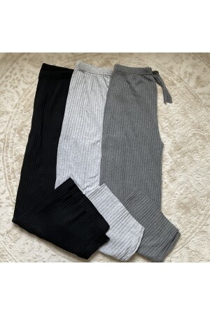 MNZ-3-Piece Black - سدّة الرمادي نساء Corduroy ملابس داخلية مريحة ومسروقة رياضية - عادي مريحة في المنزل ارتداء البيجاما