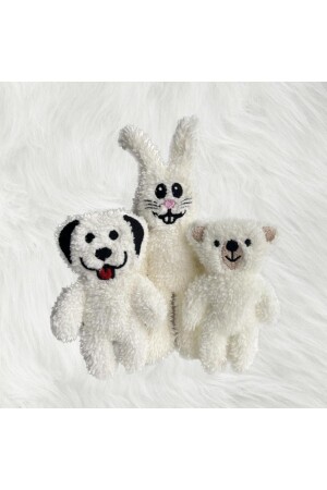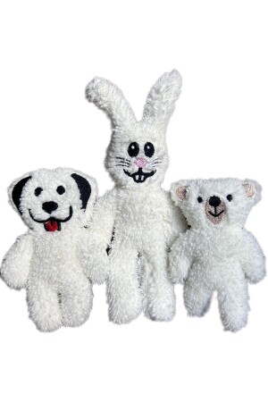 م.ن.ز-يتكون المنتج من 3 أشكال حيوانية. الأرنب هو 22 سم - الكلب والدب 13 سم في الحجم. يتم تسليمها ك مجموعة من الثلاثة.