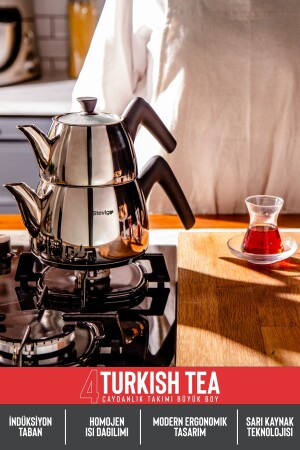 MNZ-4 الشاي التركي 18/10 عصا الفولاذ المقاوم للصدأ مجموعة كبيرة الحجم St-501
