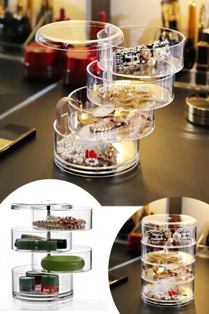 MNZ-4 طبقات السلندر المجوهرات والكياج منظمة منظمة عنق الأذن حلقة المجوهرات صندوق تخزين