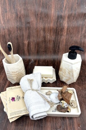 MNZ-4 قطعة مسمارة نمطة الكونكريت حمام مجموعة صبون السائل الصلبة مُزودة فرشاة الأسنان محفظة الصندوق
