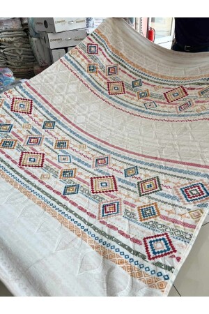 Krem Çift Kişilik Fransız Güpürlü Çeyizlik Battaniye Takımı