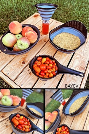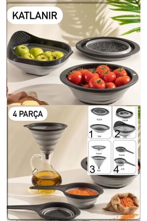 MNZ-4- Piece Folding Strainer Set 4 Piece Kitchen Set Accordion Rice Strainer Funnel Badya Dowry Set