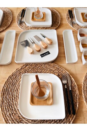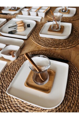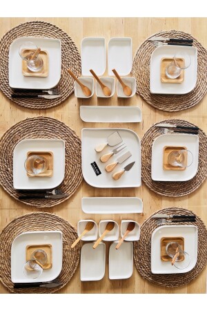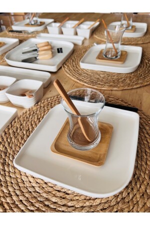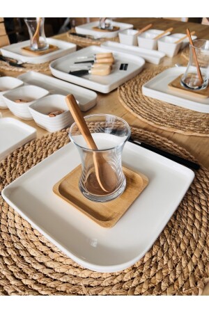 MNZ-6 طبقات الإفطار 19 سم 4 قطع وعاء مستطيل 14 سم 6 صوص / جام كؤوس 2 زيتونات 6 طبقات الشاي من البامبو 6 ملعقة شاي 6 ك