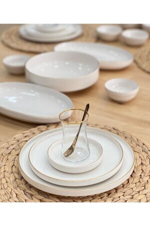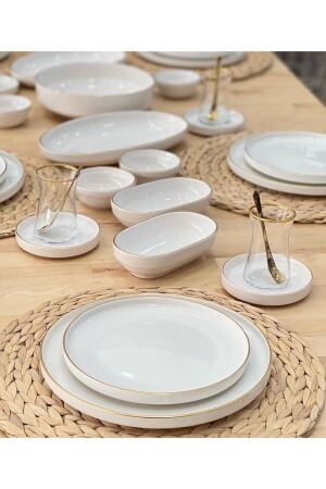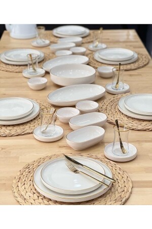 64 Parça 12 Kişilik Platin Modern Krem Kahvaltı Takımı