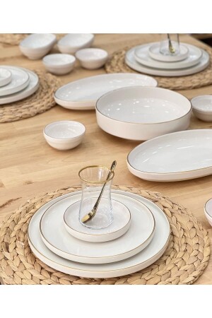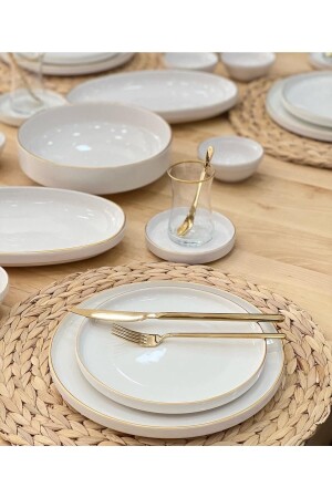 64 Parça 12 Kişilik Gold Modern Krem Kahvaltı Takımı