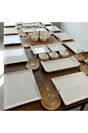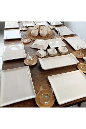 64 Parça 12 Kişilik Platin Modern Krem Kahvaltı Takımı