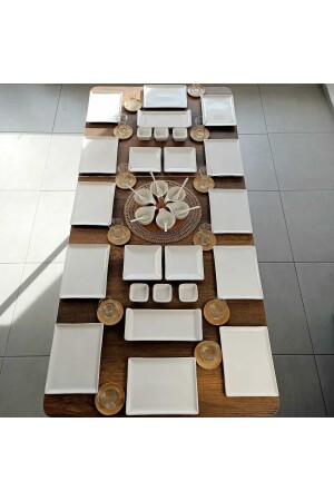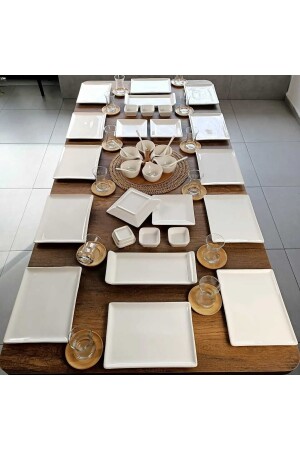 مجموعة فطور MNZ-53 قطع MKT120 لـ 12 شخص - 12 قطعة طقم خدمة مربع 24x18cm - 12 قطعة طقم شاي بامبو - 12 قطعة كوبات شاي لا