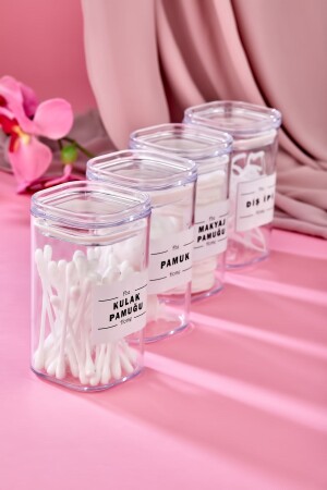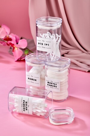 MNZ-4-Piece أكريليك فلوس الأسنان & قطن Bud & مكياج قطن حمام المجموعة مع غطاء شفاف 250 مل
