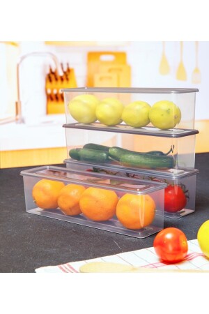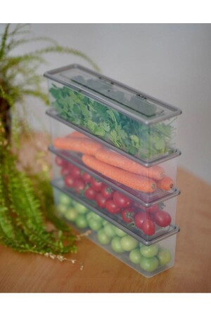 الجسم شفاف، والقواطع لونها مدخن مجموعة من 4 حاويات تخزين.