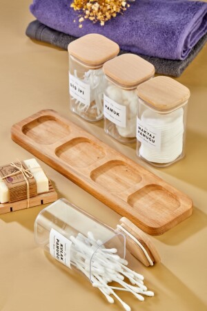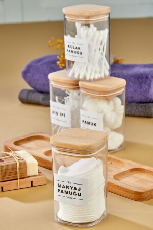 MNZ-4-Piece ميكا القطن البودز & القطن & الماكياج القطن & فلوس الأسنان منظمة صندوق تخزين مع منصة خشبية