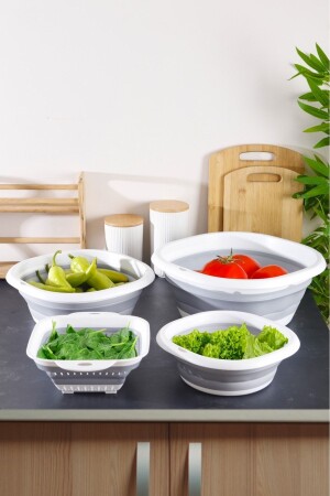MNZ-4- Piece Folding Strainer Set 4 Piece Kitchen Set Accordion Rice Strainer Funnel Badya Dowry Set