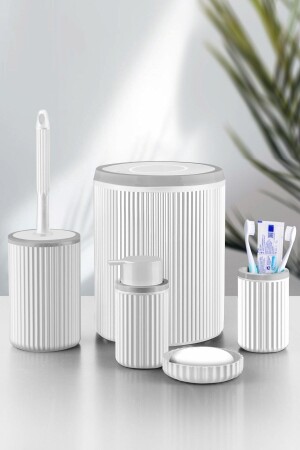 5 Parça Lenox Akrilik Bambu Banyo Seti Beyaz