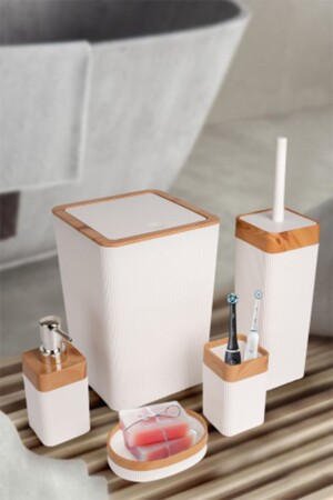 5 Parça Lucas Akrilik Bambu Banyo Seti Beyaz