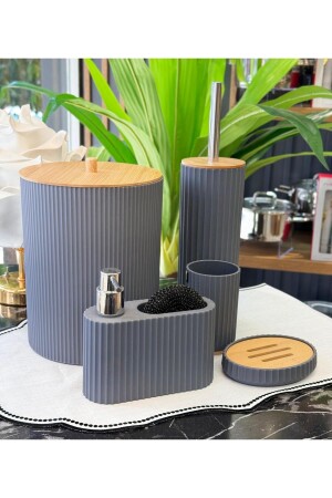 MNZ-5 قطعة لوكاس أكريليك حمام البامبو مجموعة الرمادي