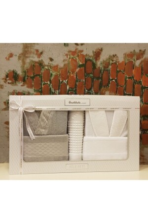 Eda 8 Parça Kutulu Nakışlı Bornoz Seti Bornoz Takımı Çeyiz Seti