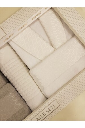 Kadın Erkek Bej Aile Bornoz Seti