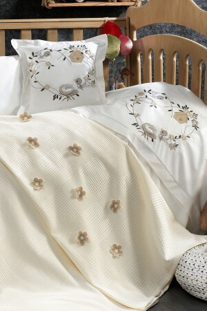 MNZ-5 قطعة 100% القطن - 3D زهرة وطائر نمط Cemre كريم طفل غطاء غطاء مجموعة