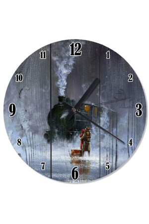 MNZ-50 سم قطر قطار أسود تسير ساعة الجدار على ساعة خشب-1510-50