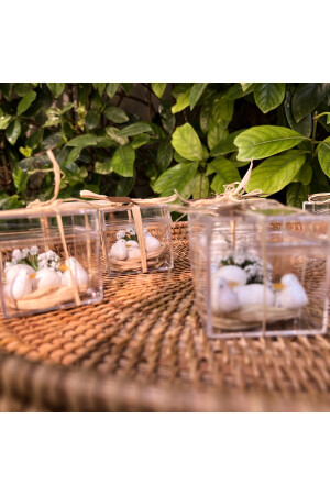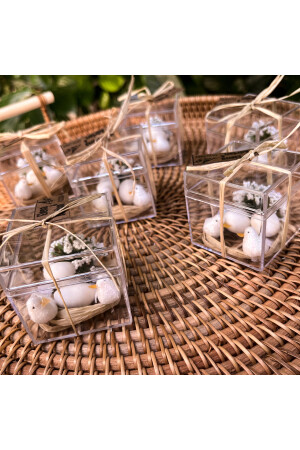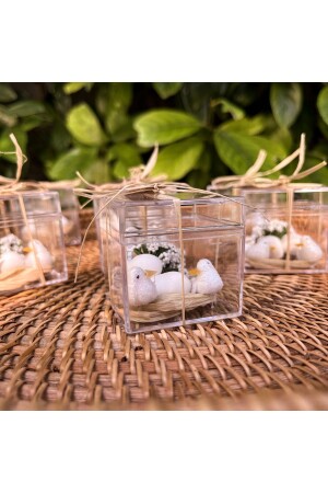 المواد المستخدمة: صندوق ميكا البلاستيكي رافيا والقوس متوفرة. الأرمندات المزلية والطيور متوفرة. الأبعاد المزينة للمنت