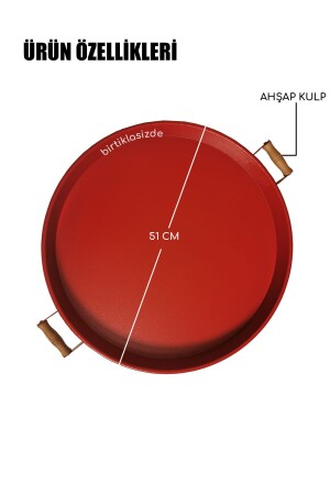 3 Lü (51- 37- 30 CM) Ahşap Kulplu Metal Tepsi Çay Tepsisi Kahve Tepsisi Sunum Tepsi Seti