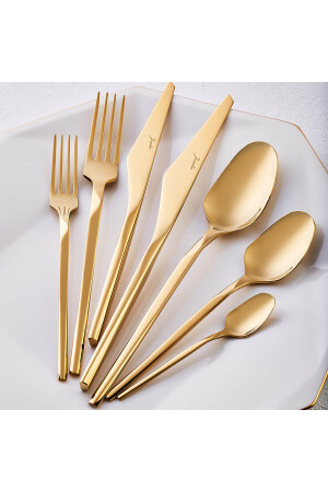MNZ-Jumbo 5100 كوارز تيتانيوم الذهب 84 قطعة مجموعة متعددة الأفراد لـ 12 شخص محتويات المنتج: 12 ملعقة طعام، 12 شوكة عش
