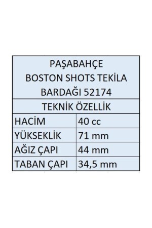 MNZ-Paşabahçe 52174 بوسطن شات كوب تيكيلا 40cc - 12 قطعة لا ينطبق كوبونات خصم / رموز في هذه المتاجر. هناك أقل