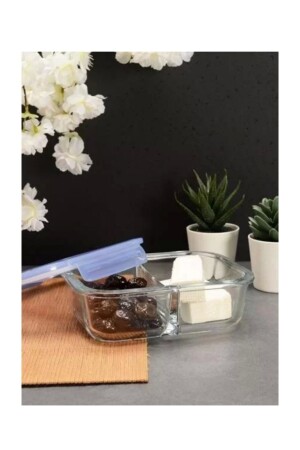 MNZ-530276 حاوية تخزين الزجاج المقسومة 630 Cc يحتفظ بأطعمة الطعام لفترة طويلة بفضل غطائه الخاص. بفضل ميزة الم
