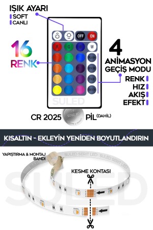 3 Çipli Rgb Şerit Led Tak Çalıştır Animasyonlu 5 Metre 5050 Smd
