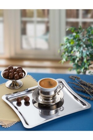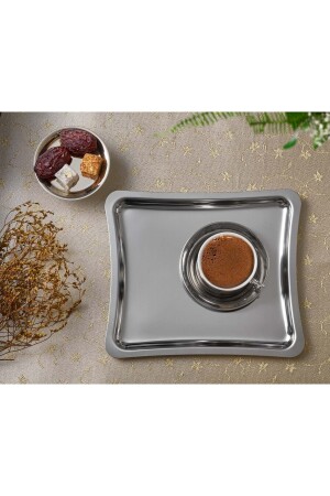 Paslanmaz Çelik Kare 6lı Aksesuarsız Çay Kahve Sunum Tepsisi