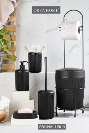 5 Parça Lenox Akrilik Bambu Banyo Seti Siyah
