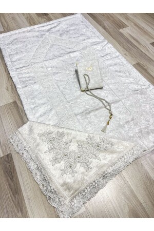 3 ADET Fransız Güpürlü İşlemeli Kadife Çeyizlik Gelin Seti Seccadesi