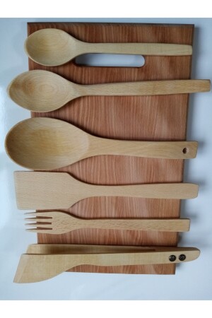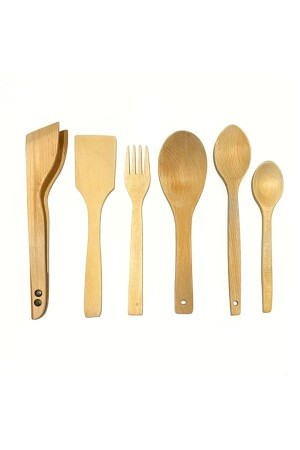 MNZ-6 Piece Oiled Beech Wood Spoon Wooden Spatula Serving Wooden Fork Tongs Set منتجاتنا مصنوعة من خشب البيك. لا تحتوي على أي شاشة أو مل