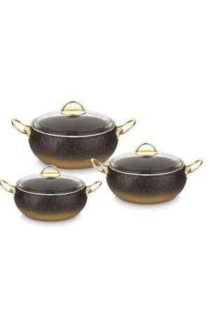 م.ن.ز-كوككايس 6 قطع غرانيت مجموعة زجاجية زجاجية غطاء 22 سم عميقة وعاء 20 سم عميقة وعاء 18 سم عميقة وعاء