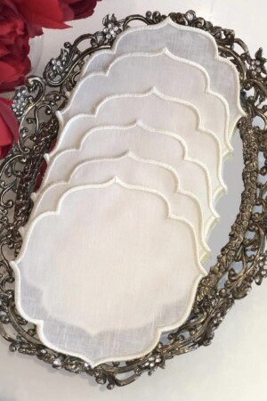 6’lı Gümüş Nakışlı Kokteyl Peçete