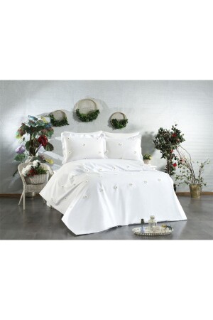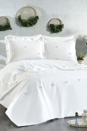 MNZ-6 قطعة 3D ديزي نمط مطرز مزدوج القطن الأبيض غطاء غطاء مجموعة SRBNHMNAK1PAP