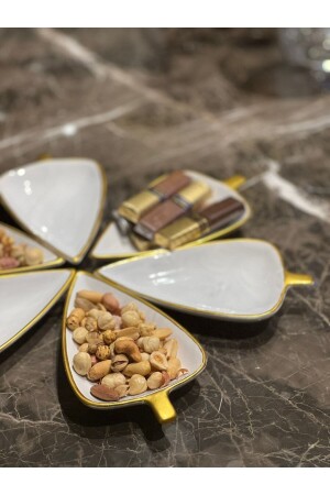 Dekoratif Gold Kaplama 6 Lı Makaronluk Kahve Yanı Sunumluk Lokumluk Lüx