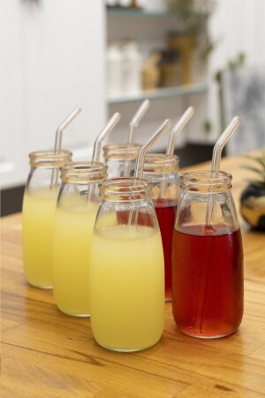 MNZ-6 قطع زجاجية زجاجية مع شربة منقشة، مشروبات مشوية وشراب كوكتيل زجاجة زجاجية مجموعة - غطاء دليل التسرب MA