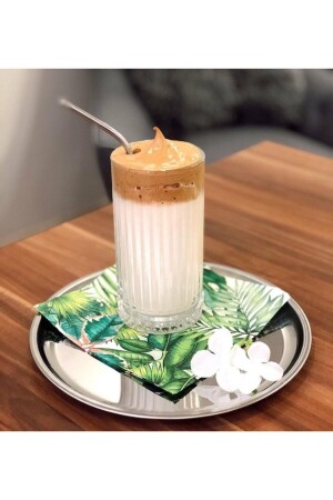 مصنوع من فولاذ فولاذ المقاوم للصدأ من الجودة الأولى. يبلغ قطرها حوالي 20 سم. يمكن استخدامه في تقديم القهوة والحلويات والكعك. يتم